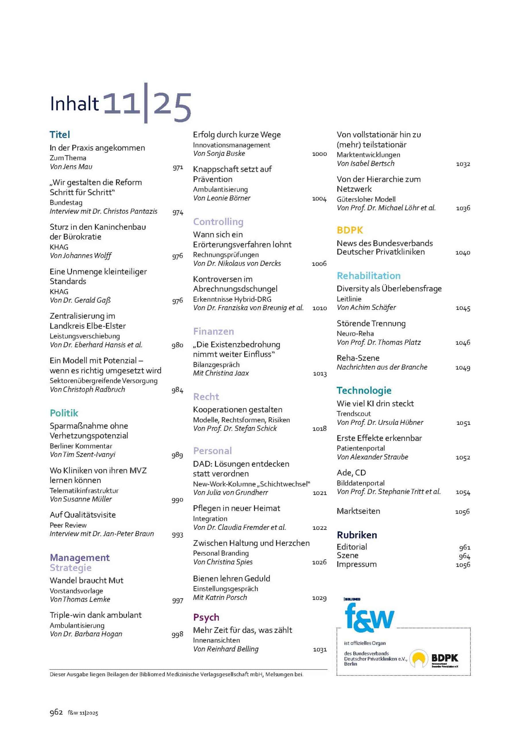 f&w führen und wirtschaften im Krankenhaus 11|25 | Einzelheft
