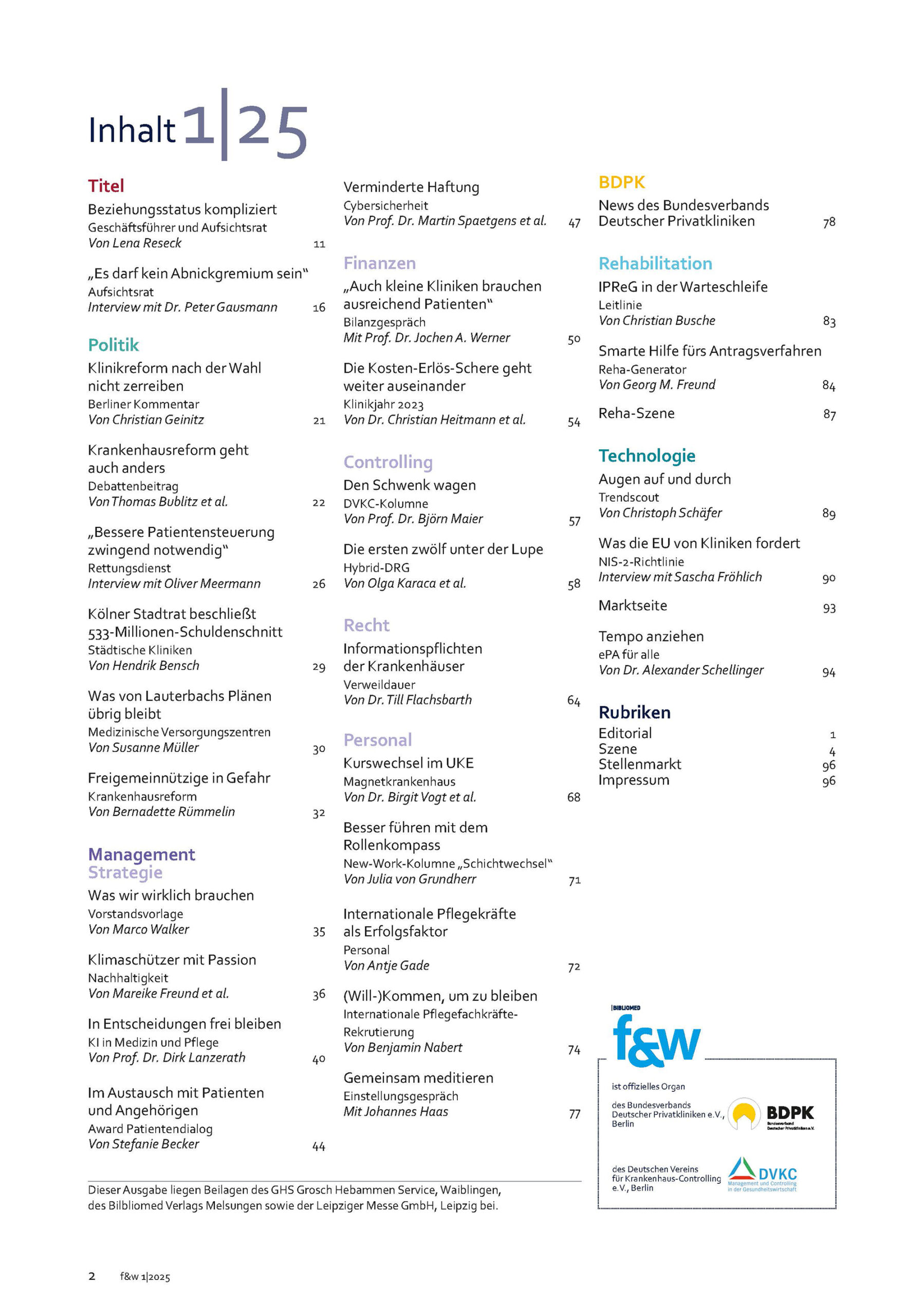 f&w führen und wirtschaften im Krankenhaus 1|25 | Einzelheft