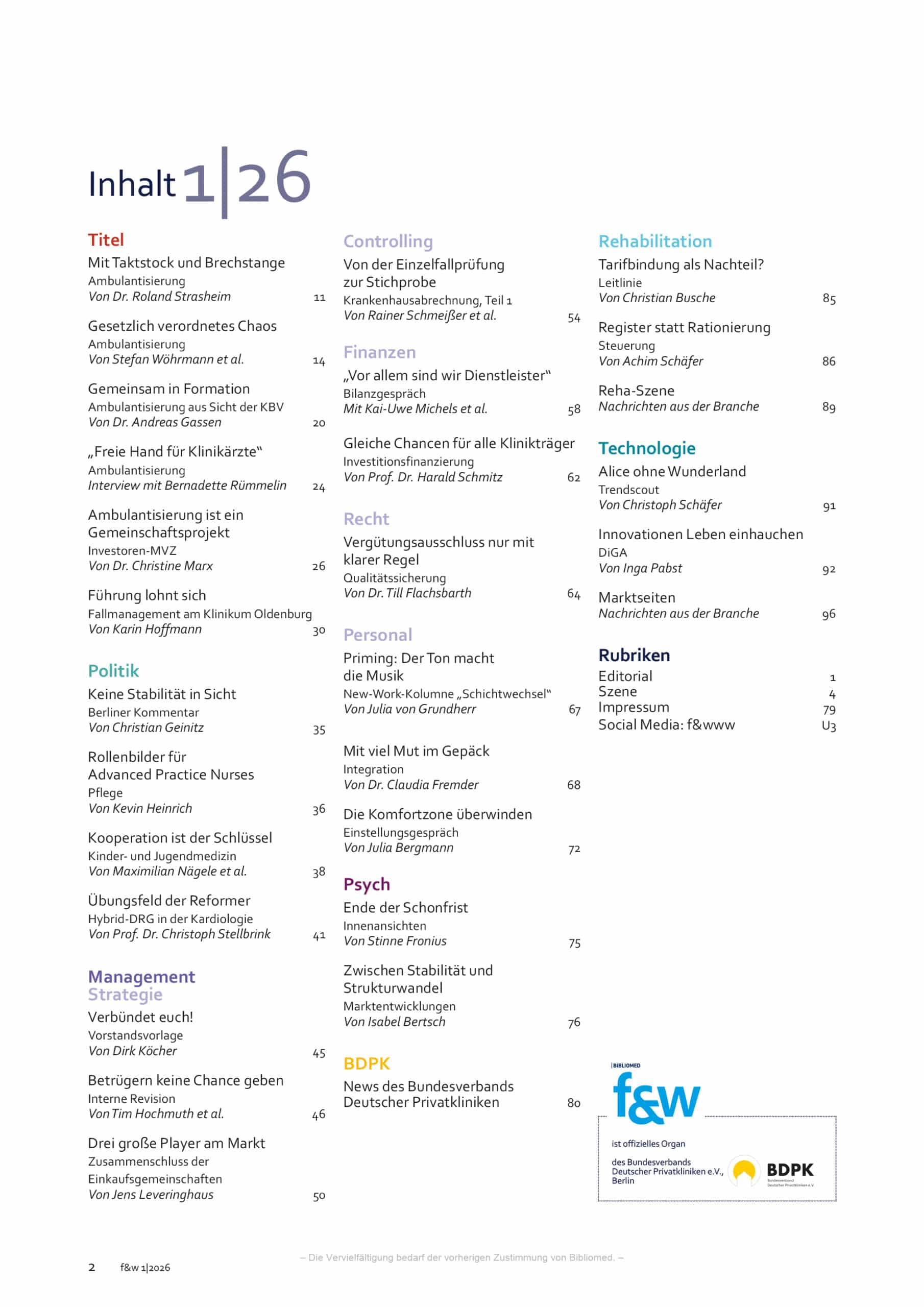 f&w führen und wirtschaften im Krankenhaus 1|26 | Einzelheft