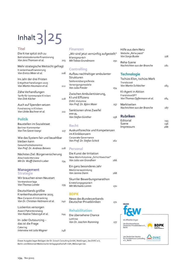 f&w führen und wirtschaften im Krankenhaus 3|25 | Einzelheft