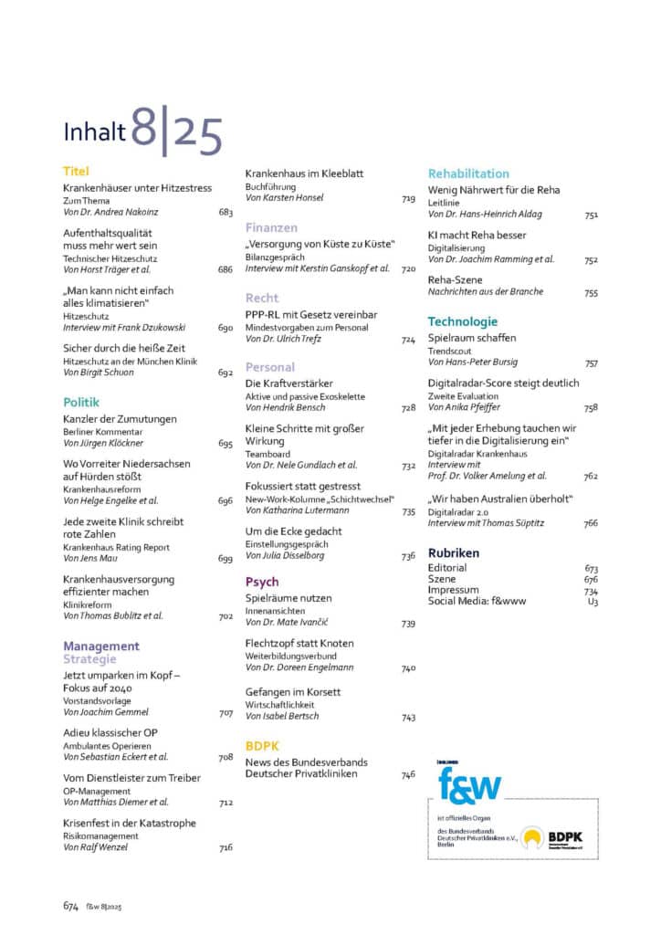 f&w führen und wirtschaften im Krankenhaus 8|25 | Einzelheft